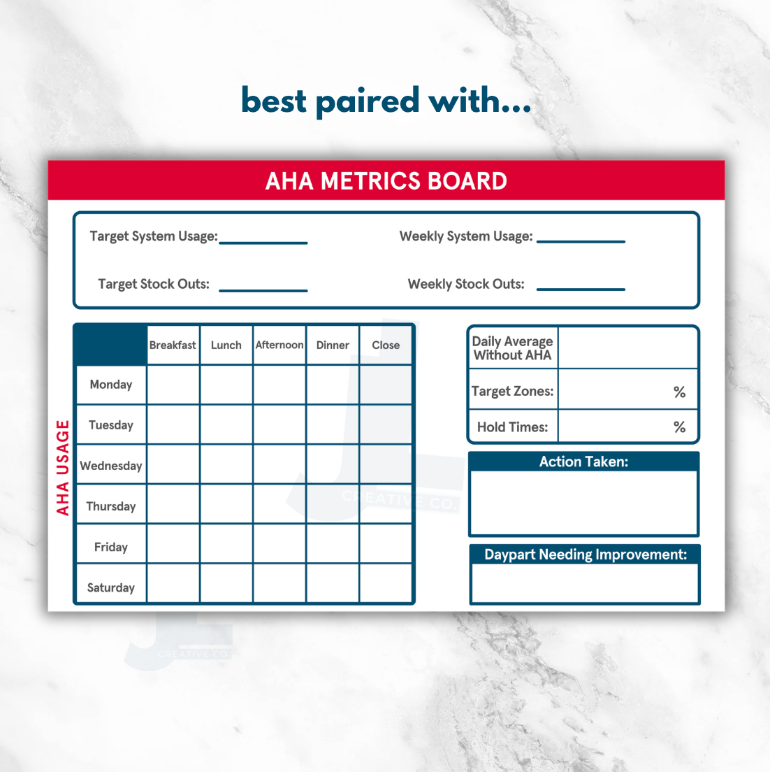 The 18 x 24 Ops Hub Daily Assessment Board is a simple, visual system designed to help restaurant teams stay on track with key Food Safety Assessments (FSA) and Hourly Risk Assessments (HRA) throughout the week.