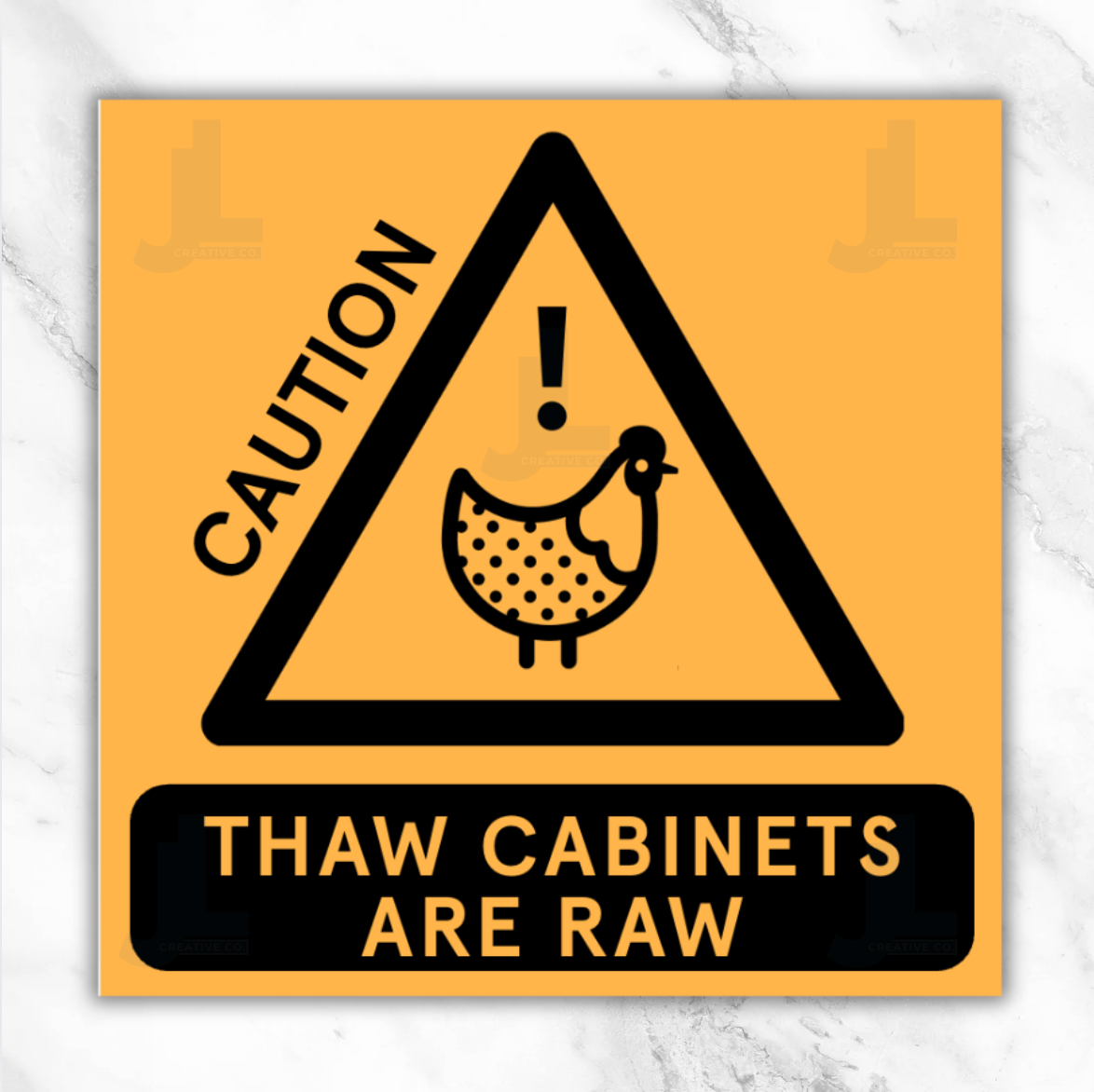 Help reinforce food safety standards with this bold, easy-to-read Caution label designed for thaw cabinets. This label is a must-have visual for any back-of-house raw thaw cabinets.