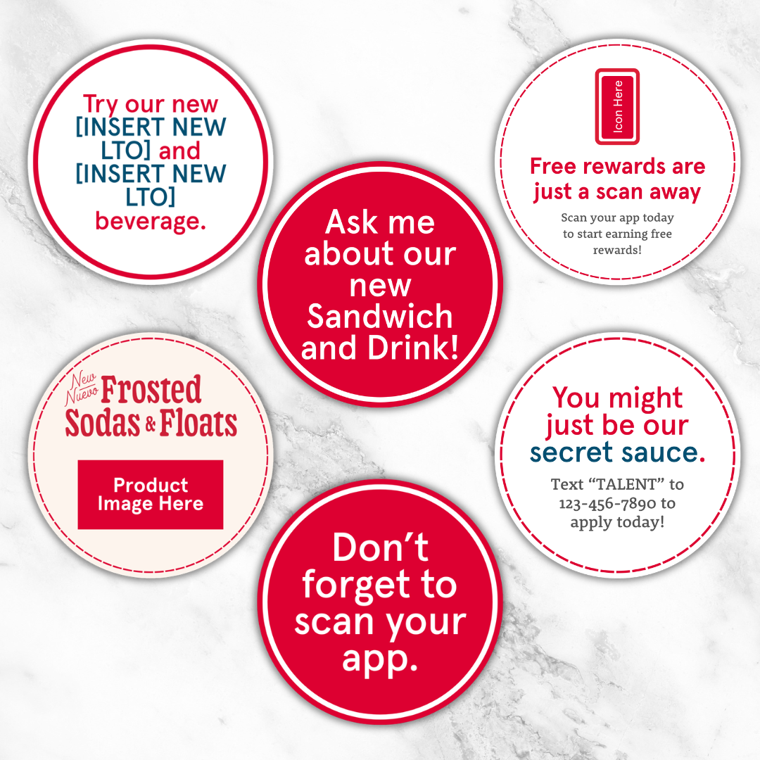 Small but powerful — these 2.25” Pin Buttons are a simple, high-visibility way to promote what matters most in your restaurant.