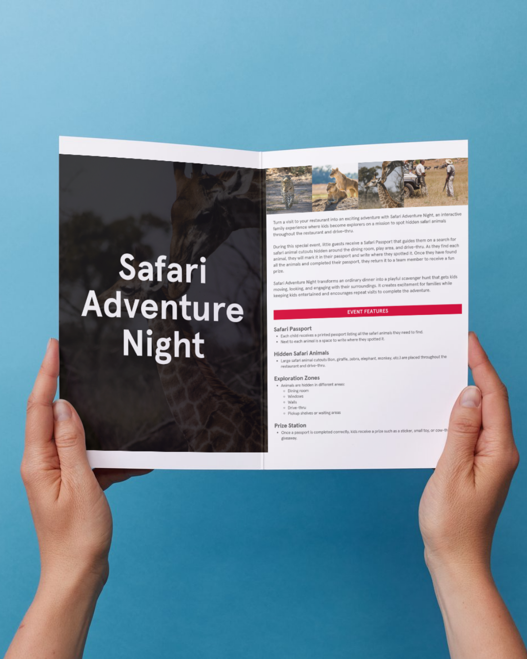 You will receive 36+ fully built, ready-to-launch restaurant events designed to work at: