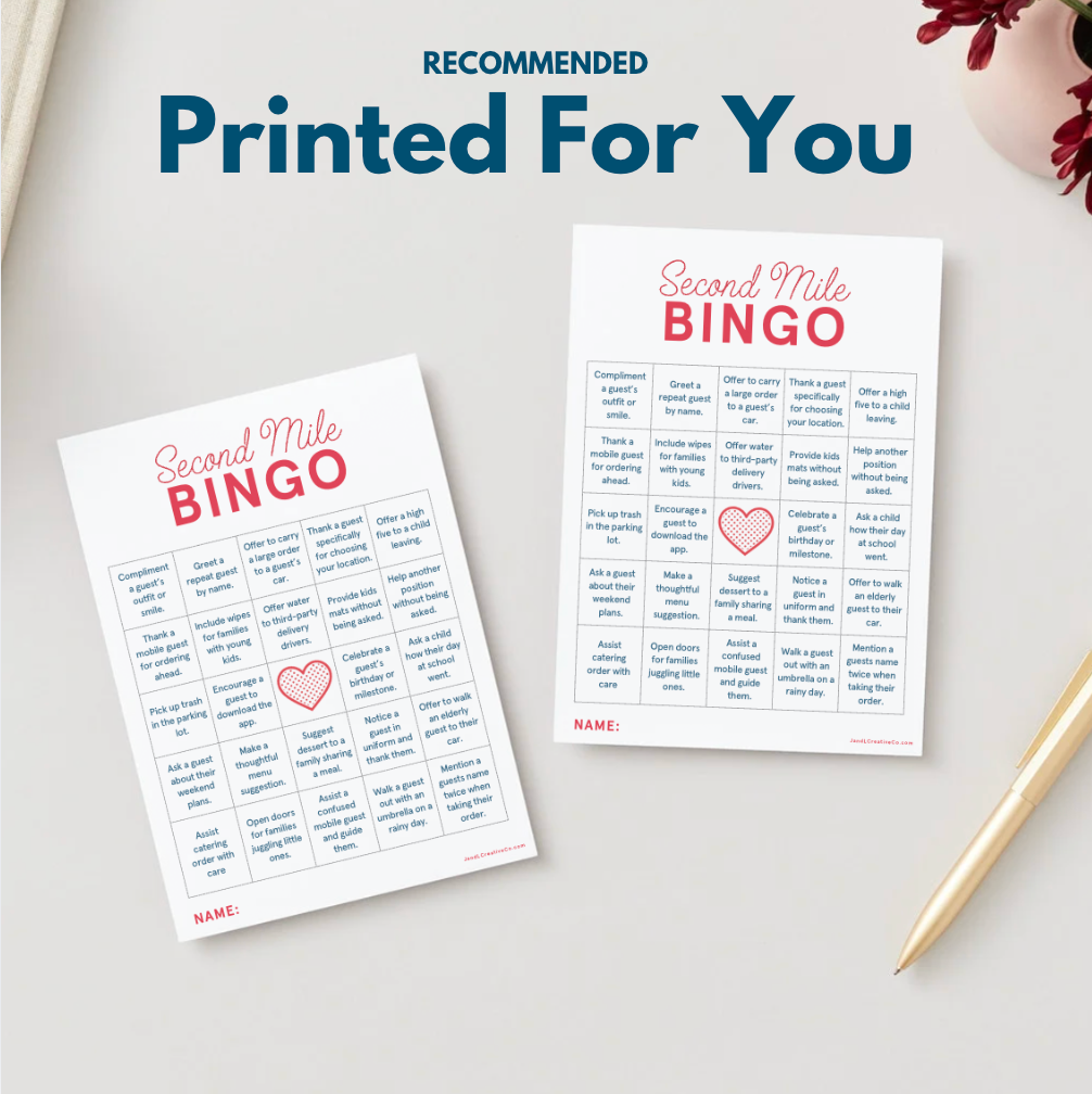 Make going the extra mile fun, visible, and contagious with our Second Mile Bingo Card, designed to reinforce intentional hospitality in a simple, engaging way.